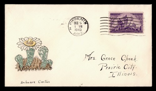 1940 Arizona State Flower Saguaro Cactus Handcolored Cachet Phoenix Az Ebay